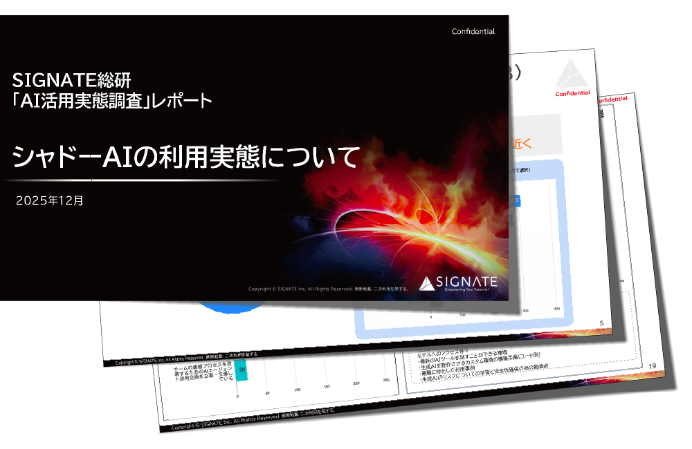 SIGNATEは、SIGNATE総研による「AI活用実態調査レポート 2025年12月版(特集:シャドーAI)」を公開した。生成AIの利用が広がる一方で、企業の公式な許可を得ずにAIツールを使う「シャドーAI」の実態と課題を整理している。