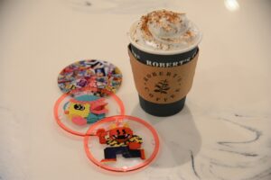 アクリルコースター付きのホットドリンクを販売する。